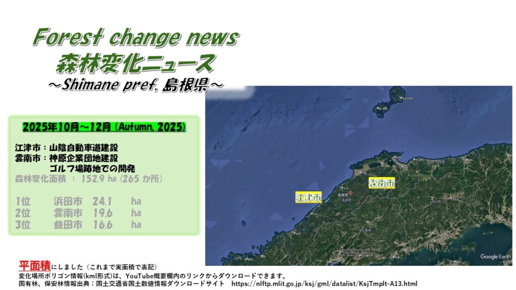2026年1月24日 2025年 10月~ 12月期 森林変化箇所の提供を開始しました。