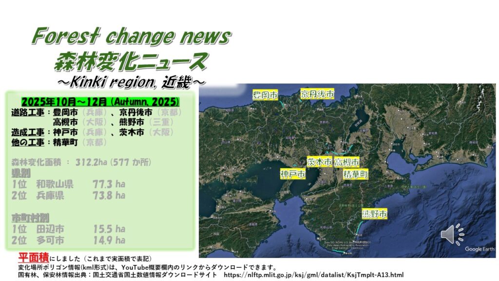 2025年10月11日 2025年 7月~ 9月期 森林変化箇所の提供を開始しました。