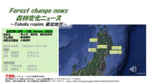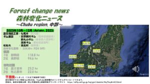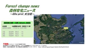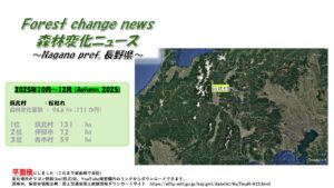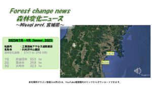 宍粟市では、今回最大となる9.5haの森林変化が見られました。Google street viewで伐採の様子を確認する事ができました。