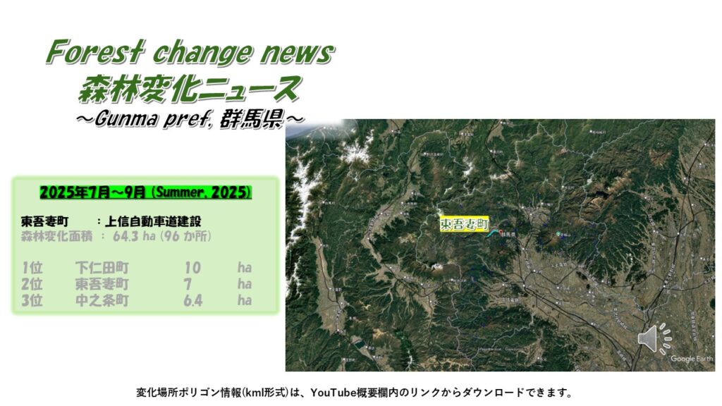 森林付箋東吾妻町では、上信自動車道建設による森林変化が見られました。