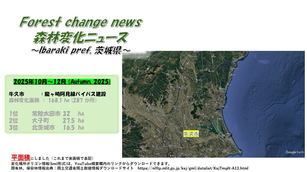 桜川市の森林変化箇所では、Google Earth画像で、太陽光発電所?建設が確認されました(S6)