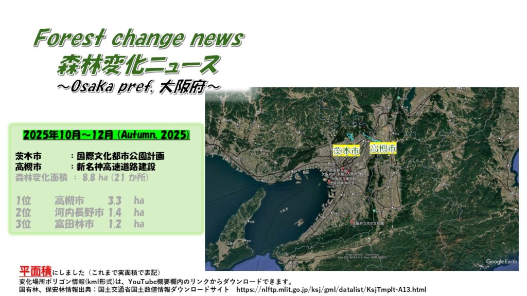 高槻市では、新名神高速道路建設による森林変化がみられました。(19)