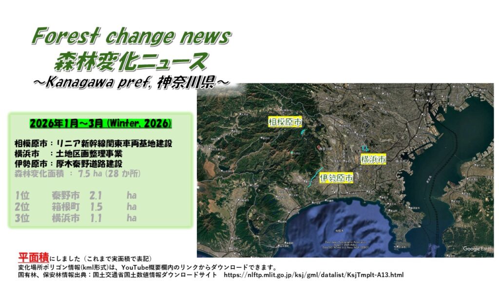 森林付箋相模原市緑区では、リニア新幹線関東車両基地建設による森林変化が見られました。(3)